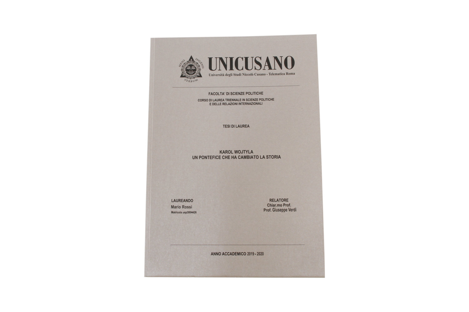 Il nostro Team ti preparerà un preventivo personalizzato, valutando il numero di pagine della tua tesi, il formato del documento, il colore di stampa per ciascuna pagina (scala di grigi, quadricromia, misto colore e bianco e nero), la grammatura della carta, la tipologia di brossura, il numero di copie ed eventuali altre richieste personalizzate.
