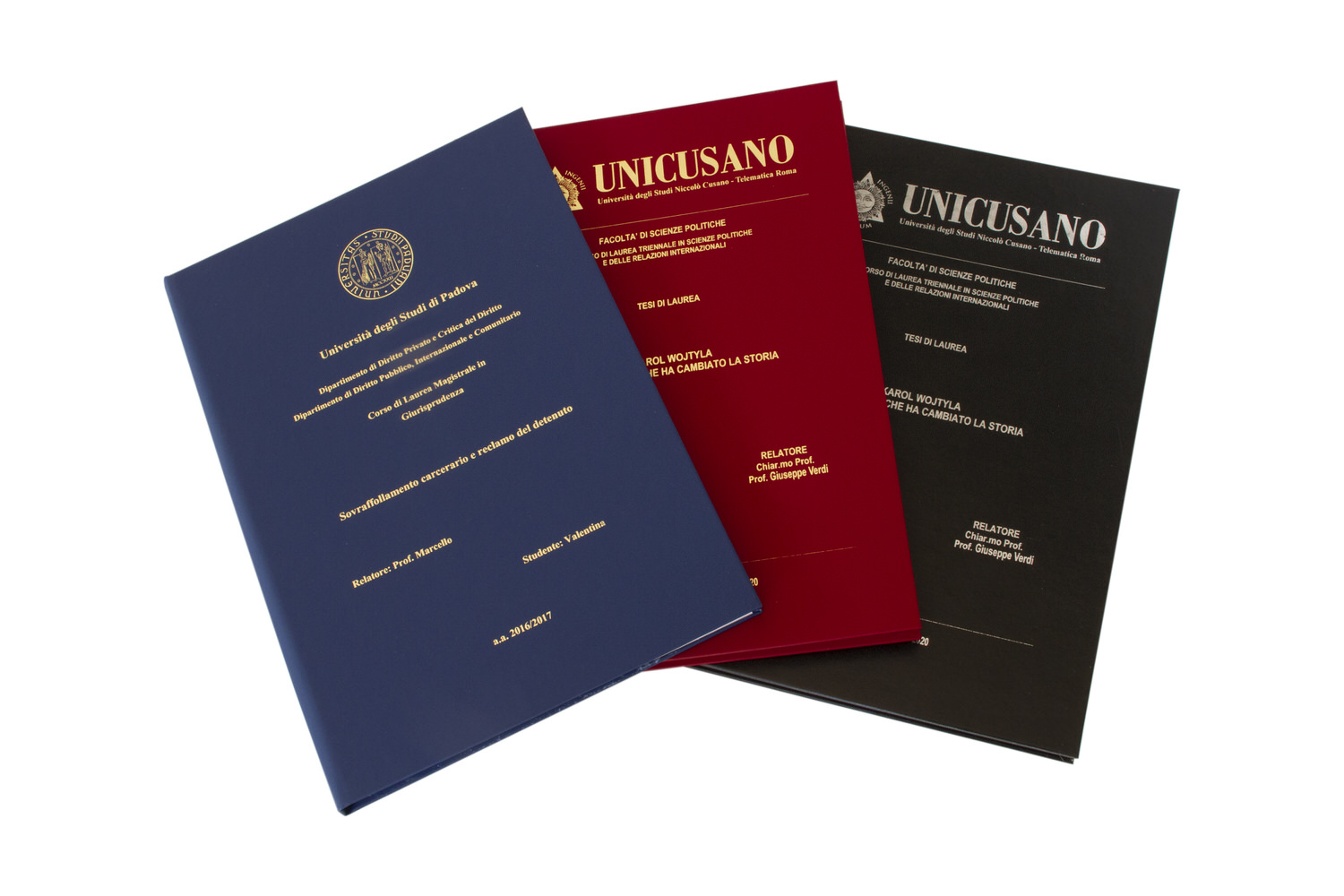 Offriamo ampia varietà di colori e finiture, per una tesi personalizzata in ogni dettaglio.